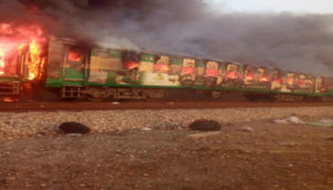 ഇസ്ലാമാബാദ് ഒക്ടോബർ 31: പാക്കിസ്ഥാനിലെ റഹിം യാർ ഖാന് സമീപം ലിയാക്കത്പൂരിൽ റാവൽപിണ്ടിയിൽ നിന്നുള്ള തെസ്ഗാം എക്സ്പ്രസിന് തീ പിടിച്ച് 73 പേർ കൊല്ലപ്പെടുകയും നിരവധി പേർക്ക് പരിക്കേൽക്കുകയും ചെയ്തു. അപകടത്തിൽപ്പെട്ടവരുടെ എണ്ണം റഹിം യാർ ഖാൻ ജില്ലാ പോലീസ് ഓഫീസർ അമീർ തൈമൂർ ഖാൻ സ്ഥിരീകരിച്ചതായി ജിയോ ന്യൂസ് റിപ്പോർട്ട് ചെയ്തു.
