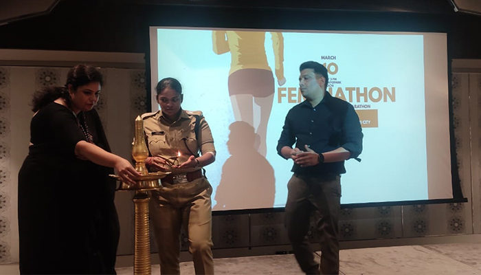 എറണാകുളം മാർച്ച് 17: സ്ത്രീയുടെ സ്വയം ഉണർവ്വെന്ന ലക്ഷ്യം മുൻനിർത്തി കൊച്ചിയിൽ മെയ് 17ന് സംഘടിപ്പിച്ച വനിതകളുടെ മാരത്തോൺ മത്സരം ‘ഫെമിനത്തോൺ 2020 ‘ന്റെ പ്രഖ്യാപനവും വെബ്സൈറ്റ് പ്രകാശനവും എറണാകുളം സിറ്റി പൊലീസ് ഡെപ്യൂട്ടി കമ്മീഷ്ണർ ജി. പൂങ്കുഴലി ഐ.പി.എസ് നിർവ്വഹിച്ചു. കാക്കനാട് നോവോട്ടൽ ഹാളിൽ വച്ചുനടന്ന ചടങ്ങിലാണ് ‘ഫെമിനത്തോൺ 2020’ ന്റെ പ്രഖ്യാപനം നടന്നത്.