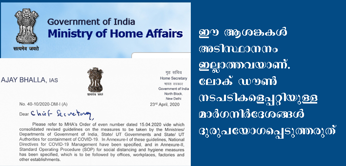 എന്നാല് ഇവയെല്ലാം തെറ്റായ ആശങ്കകള് മാത്രമാണ്. പുതുക്കിയ മാര്ഗനിര്ദേശങ്ങളില് മുകളില് പറഞ്ഞപ്രകാരം യാതൊരുവിധ വ്യവസ്ഥകളുമില്ല എന്ന് വ്യക്തമാക്കിയിട്ടുണ്ട്. അതുകൊണ്ട് തന്നെ ഈ ആശങ്കകള് അടിസ്ഥാനമില്ലാത്തവയാണ്. രോഗവ്യാപനമേഖലകളില് ഉള്പ്പെടാത്ത കാലത്തോളം, മുന്പ് തന്ന ഇളവുകള് പ്രയോജനപ്പെടുത്താവുന്നതാണ്. പുതുക്കിയ മാര്ഗനിര്ദേശങ്ങള് ഈ ഇളവുകള് വെട്ടിക്കുറയ്ക്കുന്നില്ല.