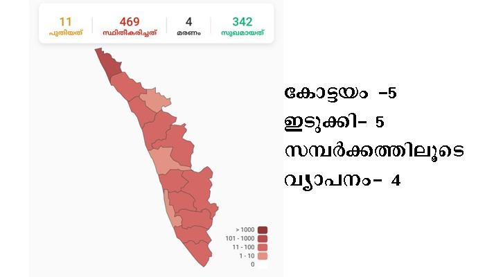 കേരളത്തിൽ 11 പേർക്ക് കൂടി കോവിഡ്: 4 പേർക്ക് രോഗമുക്തി