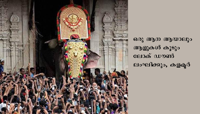 തൃശൂര്: ലക്ഷങ്ങള് പങ്കെടുക്കുന്ന പൂരം ഇത്തവണ അഞ്ചു പേര് മാത്രം ചേര്ന്ന് നടത്തും. ഒരു ആനയും അഞ്ചു പേരും ചേര്ന്ന് പൂരം നടത്താന് അനുവദിക്കണമെന്ന അപേക്ഷയില് ആനയെ കളക്ടര് ഒഴിവാക്കി. അതോടെ അഞ്ചാളുകളുടെ പൂരമായി മാറി.