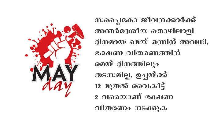 മെയ് ദിനം; സപ്ലൈകോ ജീവനക്കാർക്ക് അവധി