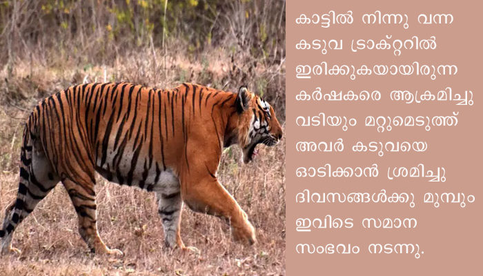 ദിവസങ്ങള്ക്കുമുമ്പും ഇവിടെ സമാന സംഭവം ഉണ്ടായിരുന്നു. 45കാരനായ മത്സ്യതൊഴിലാളിക്കുനേരെ ആയിരുന്നു അന്ന് കടുവയുടെ ആക്രമണം ഉണ്ടായത്. മീന്പിടിത്ത ബോട്ടിലേക്ക് ചാടിക്കയറിയ കടുവ മത്സ്യതൊഴിലാളിയെ ആക്രമിക്കുകയായിരുന്നു. സംഭവം നടക്കുമ്പോള് ഇയാളോടൊപ്പം രണ്ടുപേര്കൂടി ഉണ്ടായിരുന്നു.