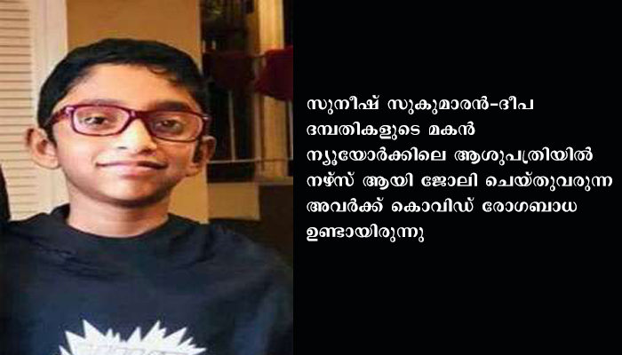 ന്യൂയോര്‍ക്കിലെ ആശുപത്രിയില്‍ നഴ്‌സ് ആയി ജോലി ചെയ്തുവരുന്ന ദീപയ്ക്കും സുനീഷിനും ജോലിക്കിടയില്‍ കൊവിഡ് രോഗബാധ ഉണ്ടായിരുന്നു. വിദഗ്ധ ചികിത്സയെത്തുടര്‍ന്ന് ഇവരുടെ രോഗം ഭേദമായി. ഇവരില്‍നിന്നാവാം കുട്ടിക്ക് രോഗം പകര്‍ന്നതെന്നാണ് നിഗമനം. രോഗം ഗുരുതരമായപ്പോള്‍ കുട്ടിയെ ആശുപത്രിയില്‍ പ്രവേശിപ്പെച്ചെങ്കിലും ജീവന്‍ രക്ഷിക്കാനായില്ല. അദ്വൈത് രണ്ടാം ക്ലാസ് വിദ്യാര്‍ഥിയാണ്.