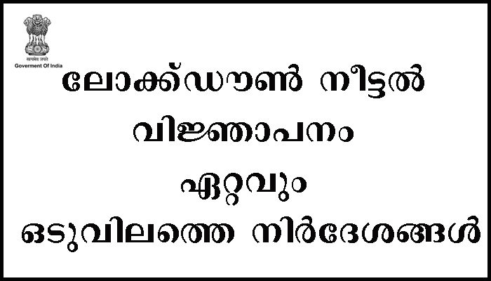 തിരുവനന്തപുരം: കോവിഡ്-19 നിര്വ്യാപന പ്രതിരോധ പ്രവര്ത്തനങ്ങളുമായി ബന്ധപ്പെട്ട് രാജ്യത്ത് നിലനില്ക്കുന്ന ലോക്ക്ഡൗണ് മെയ് 17 വരെ ദീര്ഘിപ്പിച്ച് കേന്ദ്ര ആഭ്യന്തര മന്ത്രാലയം ഉത്തരവായ സാഹചര്യത്തില് സംസ്ഥാനത്തെ നിയന്ത്രണങ്ങളും നടപടിക്രമങ്ങളും സംബന്ധിച്ച് മാര്ഗനിര്ദേശങ്ങള് പുറപ്പെടുവിച്ചു.