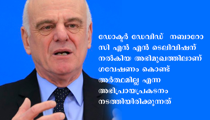 ഏറ്റവും ഒടുവിൽ രംഗത്തുവന്നിരിക്കുന്നത് ഡോക്ടർ ഡേവിഡ് നബാറോ ആണ്. ലണ്ടനിലെ ഇംപീരിയൽ കോളേജിൽ ഗ്ലോബൽ ഹെൽത്ത് വിഭാഗത്തിൽ പ്രൊഫസറായ ഇദ്ദേഹം ഐക്യരാഷ്ട്രസഭയുടെ സയൻറിസ്റ്റ് കൂടിയാണ്. സി എൻ എൻ ടെലിവിഷന് നൽകിയ അഭിമുഖത്തിലാണ് ഗവേഷണം കൊണ്ട് അർത്ഥമില്ല എന്ന മട്ടിൽ അഭിപ്രായപ്രകടനം നടത്തിയിരിക്കുന്നത്. വാക്സിൻ നിർമ്മിക്കുക എളുപ്പമല്ലാത്ത ധാരാളം വൈറസുകൾ ലോകത്ത് ഉണ്ട് എന്നും അതുകൊണ്ട് കൊറോണയുടെ വാക്സിൻ വിജയം ആവുകയില്ല എന്നുമാണ് അദ്ദേഹം പറയുന്നത്. വൈറോളജിയിലെ ഒരു സാധാരണ അറിവാണ് വാക്സിൻ ഗവേഷണത്തിനെതിരെ അദ്ദേഹം അവലംബിക്കുന്നത്. ഇന്നും വാക്സിൻ കണ്ടെത്താൻ കഴിഞ്ഞിട്ടില്ലാത്ത രോഗാണുക്കൾ ഉണ്ടെന്നും രൂപമാറ്റത്തിലൂടെ മരുന്നിനെ അതിജീവിക്കുന്നവ ഉണ്ടെന്നും ശാസ്ത്രലോകത്തിന് അറിയാം. എന്നാൽ കൊറോണ വൈറസ് ഈ വിഭാഗത്തിൽ പെട്ടതാണോ എന്ന് ഇതുവരെ തെളിഞ്ഞിട്ടില്ല. പിന്നെ എങ്ങനെ വാക്സിൻ ഗവേഷണം വിജയകരമാകാൻ ഇടയില്ല എന്ന് പ്രവചിക്കാൻ കഴിയുമെന്ന ചോദ്യമാണ് ഉയരുന്നത്.