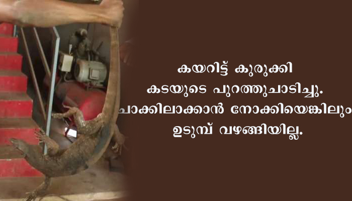 ഇടുക്കി: ലോക്ഡൗണിനെ തുടര്ന്ന് അടച്ചിട്ടിരുന്ന സ്വര് ണക്കട തുറന്നപ്പോള് മുട്ടയിട്ട് അടയിരിക്കുന്ന പെരുമ്പാമ്പിനെ കണ്ടതുപോലെ തൊടുപുഴയില് കണ്ടത് സ്ഥിരതാമസമാക്കിയ വലിയൊരു ഉടുമ്പിനെയാണ്.