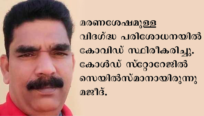 ബില്ഡിംഗിലുള്ള എല്ലാവരേയും കോവിഡ് ടെസ്റ്റിന് വിധേയനാക്കി. റിസല്ട്ട് നെഗറ്റീവാണെന്നറിഞ്ഞതോടെ കെട്ടിടം തുറന്നു കൊടുക്കാനിരിക്കെയാണ് മജീദിന്റെ മരണം. മരണശേഷമുള്ള വിദഗ്ദ്ധ പരിശോധനയില് കോവിഡ് സ്ഥിരീകരിച്ചു. കോള്ഡ് സ്റ്റോറേജില് സെയില്സ്മാനായിരുന്നു മജീദ്.
