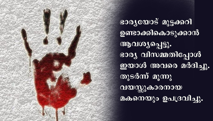 ശനിയാഴ്ച രാത്രി മദ്യലഹരിയില്‍ വീട്ടിലെത്തിയ സുഭാഷ് ഭാര്യയോട് മുട്ടക്കറി ഉണ്ടാക്കികൊടുക്കാന്‍ ആവശ്യപ്പെട്ടു. ഭാര്യ വിസമ്മതിപ്പോള്‍ ഇയാള്‍ അവരെ മര്‍ദിച്ചു. തുടര്‍ന്ന് മൂന്നു വയസ്സുകാരനായ മകനെയും ഉപദ്രവിച്ചു. മര്‍ദനത്തില്‍ കുട്ടിക്ക് ഗുരുതരമായി പരിക്കേറ്റിരുന്നു.