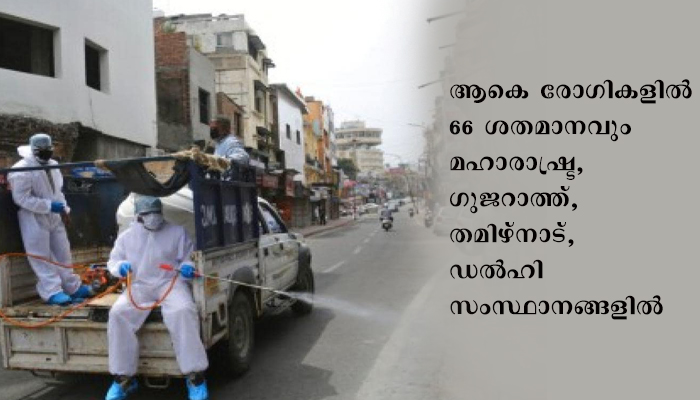 ഡല്‍ഹി: നാല് സംസ്ഥാനങ്ങളിലെ കൊവിഡ് രോഗികളുടെ എണ്ണത്തിലുള്ള വര്‍ധനവ് രാജ്യത്തെ ആശങ്കയിലാക്കുകയാണ്. രാജ്യത്തെ ആകെ കോവിഡ് രോഗബാധിതര്‍ മുക്കാല്‍ ലക്ഷത്തോളം ആയിരിക്കുന്നു. 74,000 പേര്‍ക്ക് രോഗം സ്ഥിരീകരിച്ചിട്ടുണ്ട്. ആകെ രോഗികളില്‍ 66 ശതമാനവും മഹാരാഷ്ട്ര, ഗുജറാത്ത്, തമിഴ്‌നാട്, ഡല്‍ഹി സംസ്ഥാനങ്ങളിലാണ്. രാജ്യത്തെ സമ്പദ് വ്യവസ്ഥയുടെ നട്ടെല്ല് എന്നുപറയുന്ന സംസ്ഥാനങ്ങളുമാണ് ഇവ. മറ്റ് സംസ്ഥാനങ്ങളിലെ കൊവിഡ് രോഗികളുടെ സ്ഥിതി ഏറക്കുറേ മെച്ചമായ നിലയാണ്.