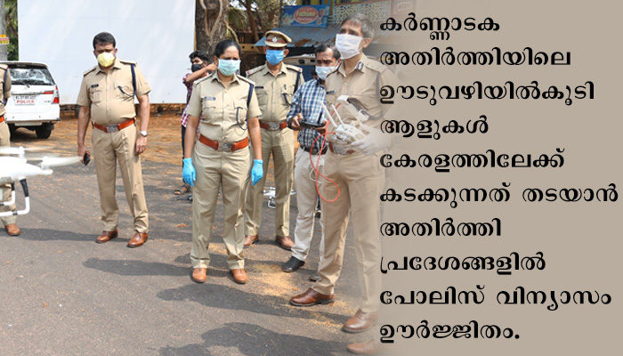 കോവിഡ് പശ്ചാത്തലത്തില് കര്ണ്ണാടക അതിര്ത്തിയിലെ ഊടുവഴിയില്കൂടി ആള്ക്കാര് കേരളത്തിലേക്ക് കടക്കുന്നത് തടയാന് അതിര്ത്തി പ്രദേശങ്ങളില് പോലിസ് വിന്യാസം ഊര്ജ്ജിതമാക്കി. തലപ്പാടി അതിര്ത്തി പോസ്റ്റിനു പുറമേ മഞ്ചേശ്വരം പോലിസ് സ്റ്റേഷന് പരിധിയിലെ 22 അതിര്ത്തി പ്രദേശങ്ങിലും ആദൂരിലെ ഒമ്പത് അതിര്ത്തികളിലും ബദിയടുക്കയില് മൂന്ന് സ്ഥലങ്ങളിലും സായുധ പോലിസിനെ നിയോഗിച്ചു. കൂടാതെ ബന്തടുക്ക-മാണിമൂല, പാണത്തൂര് എന്നീവിടങ്ങളിലും പോലിസിനെ വിന്യാസിച്ചു.