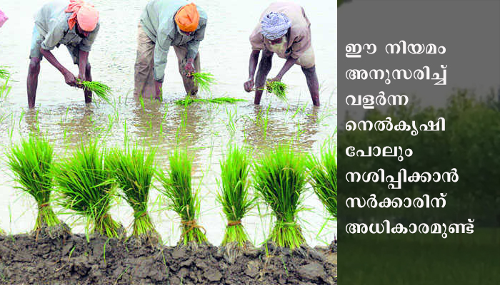ഭൗമോപരിതലത്തിലെ ജലം സംരക്ഷിക്കാന് പാസാക്കിയ ഈ നിയമപ്രകാരം നെല്കൃഷിക്ക് പ്രത്യേക സമയവും നിശ്ചയിച്ചിരുന്നു. തുടര്ന്ന് വേനല്ക്കാലത്ത് നെല്കൃഷി നിരോധിച്ചു. വൈകാതെ നെല്കൃഷിയെ നിയന്ത്രിക്കാനുള്ള അത്തരമൊരു നിയമം ഹരിയാനയും നിര്മിച്ചു. ഈ നിയമം അനുസരിച്ച് വളര്ന്ന നെല്കൃഷിപോലും നശിപ്പിക്കാന് സര്ക്കാരിന് അധികാരമുണ്ട്. നിയമം ലംഘിക്കുന്നവരില്നിന്ന് ഹെക്റ്ററിന് മാസം 10,000 രൂപ പിഴ ഈടാക്കുകയും ചെയ്യും. നെല്കൃഷിക്കെതിരേ നിയമം നിര്മിച്ചതിനൊപ്പം നാണ്യവിളകളിലേക്കു മാറാനും കര്ഷകരെ പ്രോത്സാഹിപ്പിക്കുന്നുണ്ട് പഞ്ചാബ്- ഹരിയാന സര്ക്കാരുകള്.