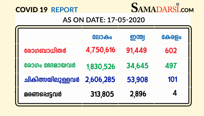 കോവിഡ് 19-നുമായി ബന്ധപ്പെട്ട പൂര്‍ണവിവരത്തിന് ; https://dhs.kerala.gov.in/wp-content/uploads/2020/05/6.Daily-Bulletin-HFWD-Malayalam-May-17_1.pdf