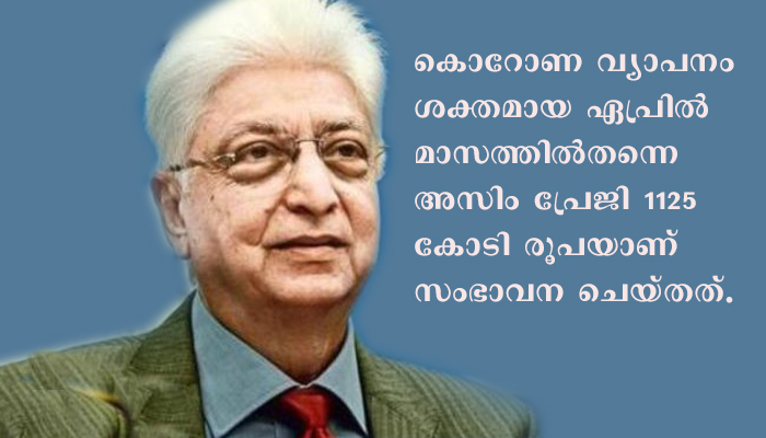 കോവിഡുമായി ബന്ധപ്പെട്ട് ആഗോളതലത്തില്‍ ഏറ്റവും കൂടുതല്‍ പണം സംഭാവനചെയ്ത ഫോബ്‌സിന്റെ ശതകോടീശ്വര പട്ടികയില്‍ മൂന്നാമതാണിപ്പോള്‍ അസിം പ്രേംജി. കൊറോണ വ്യാപനം ശക്തമായ ഏപ്രില്‍ മാസത്തില്‍തന്നെ അസിം പ്രേജി 1125 കോടി രൂപയാണ് സംഭാവന ചെയ്തത്. ഇതില്‍ 1000 കോടി അസിം പ്രേംജി ഫൗണ്ടേഷന്‍ വകയാണ്. വിപ്രോ നൂറു കോടിയും വിപ്രോ എന്റര്‍പ്രൈസസ് 25 കോടിയുമാണ് നല്‍കിയത്. മെഡിക്കല്‍ സേവന മേഖലകള്‍ക്കും അവശ വിഭാഗങ്ങള്‍ക്കും വേണ്ടിയാണ് പണം വകയിരുത്തിയിരിക്കുന്നത്.