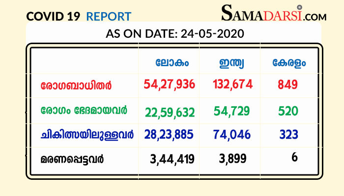 സംസ്ഥാനത്ത് ഇന്ന് ഞായറാഴ്ച (24/0 5/2020) 53 പേര്‍ക്ക് കൊവിഡ്; അഞ്ച് പേര്‍ രോഗവിമുക്തര്‍