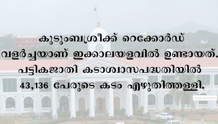 പട്ടികജാതി കടാശ്വാസപദ്ധതിയിൽ 43,136 പേരുടെ കടം എഴുതിത്തള്ളി.