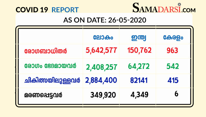 ഇതോടെ 415 പേരാണ് രോഗം സ്ഥിരീകരിച്ച് ഇനി ചികിത്സയിലുള്ളത്. 542 പേർ ഇതുവരെ കോവിഡിൽ നിന്നും മുക്തി നേടി.