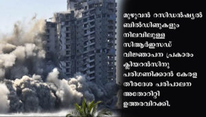 തീരദേശത്തെ ചട്ടലംഘനമുള്ള നിര്‍മാണങ്ങള്‍ ക്രമപ്പെടുത്തി പൊളിക്കലില്‍നിന്ന് ഒഴിവാക്കും