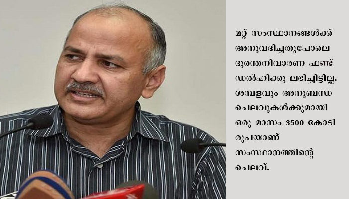ന്യൂഡല്‍ഹി: ശമ്പളം കൊടുക്കാന്‍ പണമില്ല; ഡല്‍ഹി സര്‍ക്കാര്‍ കേന്ദ്രത്തോട് 5000 കോടിയുടെ സഹായം ചോദിച്ചു. കേന്ദ്ര ധനമന്ത്രി നിര്‍മല സീതാരാമന് ഈ ആവശ്യം ഉന്നയിച്ച് കത്തെഴുതിയിട്ടുണ്ട്. മറ്റ് സംസ്ഥാനങ്ങള്‍ക്ക് അനുവദിച്ചതുപോലെ ദുരന്തനിവാരണ ഫണ്ട് ഡല്‍ഹിക്കു ലഭിച്ചിട്ടില്ല. ശമ്പളവും അനുബന്ധ ചെലവുകള്‍ക്കുമായി ഒരു മാസം 3500 കോടി രൂപയാണ് സംസ്ഥാനത്തിന്റെ ചെലവ്. കഴിഞ്ഞ രണ്ടുമാസമായി 1735 കോടി മാത്രമാണ് വരവ്. സര്‍ക്കാര്‍ ജീവനക്കാര്‍ക്ക് ശമ്പളം എങ്ങനെ നല്‍കുമെന്നതാണ് ഡല്‍ഹി സര്‍ക്കാരിന്റെ മുന്നിലുള്ള പ്രശ്‌നം. ലോക്ഡൗണ്‍ മൂലം വരുമാനമാര്‍ഗങ്ങളെല്ലാം അടഞ്ഞതിനാലാണ് കേന്ദ്രത്തോട് പണം ചോദിക്കുന്നതെന്നും ഡല്‍ഹി ഉപമുഖ്യമന്ത്രി മനീഷ് സിസോദിയ പറഞ്ഞു.