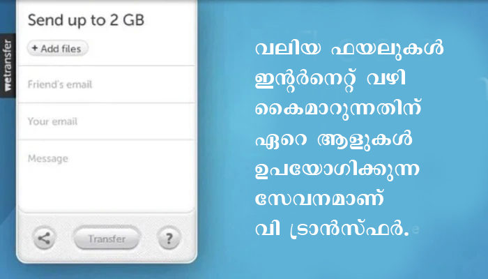 വലിയ ഫയലുകള്‍ ഇന്റര്‍നെറ്റ് വഴി കൈമാറുന്നതിന് ഏറെ ആളുകള്‍ ഉപയോഗിക്കുന്ന സേവനമാണ് വി ട്രാന്‍സ്ഫര്‍. ലോക്ക്ഡൗണ്‍ കാലത്ത് ആളുകള്‍ വീട്ടിലിരുന്ന് ഓണ്‍ലൈന്‍ ജോലികള്‍ ചെയ്യുന്നത് വര്‍ധിച്ചതോടെ വി ട്രാന്‍സ്ഫറിന്റെ ഉപയോഗത്തില്‍ വര്‍ധനവുണ്ടായിരുന്നു. നിരോധനം ഏര്‍പ്പെടുത്താന്‍ തക്കവണ്ണം എന്തുപിഴവാണ് വി ട്രാന്‍സ്ഫറിന്റെ ഭാഗത്തുനിന്ന് ഉണ്ടായതെന്ന് ഇതേവരെ വ്യക്തമായിട്ടില്ല.