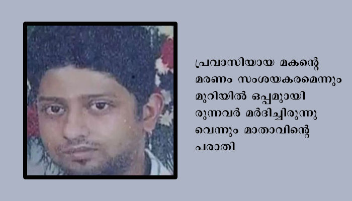 പ്രവാസിയുടെ മരണം സംശയകരം, മുറിയില്‍ ഒപ്പമുണ്ടായിരുന്നവര്‍ മര്‍ദിച്ചിരുന്നുവെന്ന് മാതാവിന്റെ പരാതി