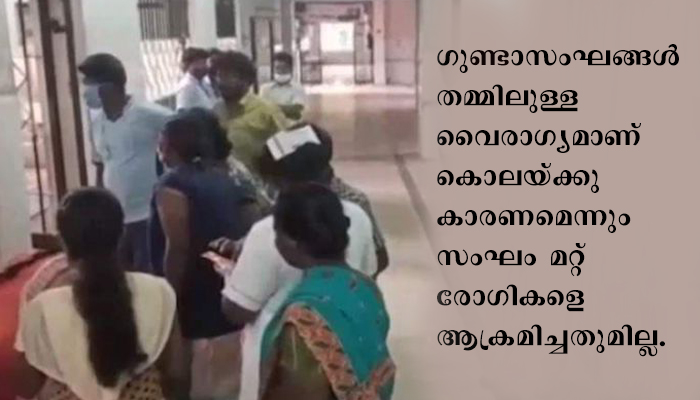 ഗുണ്ടാസംഘങ്ങള് തമ്മിലുള്ള വൈരാഗ്യമാണ് കൊലയ്ക്കു കാരണമെന്ന് പൊലീസ് പറയുന്നു. കൊല്ലപ്പെട്ട മുരുകന് നഗരത്തിലെതന്നെ രാജശേഖര് എന്നയാളെ കൊലപ്പെടുത്തിയ കേസിലെ പ്രതിയാണ്. ഈ കേസുമായി ബന്ധപ്പെട്ട് ജയിലിലായിരുന്ന മുരുകന് അടിത്തയിടെയാണ് ജാമ്യത്തിലിറങ്ങിയത്. അസുഖം മൂലം ചികില്സ തേടി മുരുകന് ആശുപത്രിയില് അഡ്മിറ്റായത് അറിഞ്ഞ എതിരാളികള് കൊല ആസൂത്രണം ചെയ്യുകയായിരുന്നുവെന്നാണ് സൂചന.