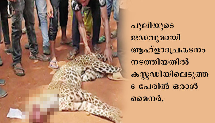തല്ലിക്കൊന്ന പുള്ളിപ്പുലിയുടെ ജഡവുമായി ആള്‍ക്കൂട്ടത്തിന്റെ ആഹ്‌ളാദ പ്രകടനം, ആറുപേരെ കസ്റ്റഡിയിലെടുത്തു