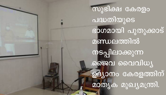 കൊടകര ബ്ലോക്ക് പഞ്ചായത്ത് ഹാളില് നടന്ന ഓണ്ലൈന് ഉദ്ഘാടന പരിപാടി യില് കൃഷി വകുപ്പ് മന്ത്രി വി എസ് സുനില് കുമാര് അധ്യക്ഷത വഹിച്ചു. പൊതു വിദ്യാഭ്യാസ വകുപ്പ് മന്ത്രി പ്രൊഫ സി രവീന്ദ്രനാഥ് സ്വാഗതം പറഞ്ഞു. ടി എന് പ്രതാപന് എം പി, ജില്ലാ പഞ്ചായത്ത് പ്രസിഡന്റ് മേരി തോമസ്, ജില്ലാ പഞ്ചായത്ത് വികസനകാര്യ സ്റ്റാന്റിംഗ് കമ്മിറ്റി ചെയര്മാന് കെ ജെ ഡിക്സണ് തുടങ്ങിയവര് മുഖ്യാതിഥികളായി. ജൈവ വൈവിധ്യ ഉദ്യാനത്തിനായി വിവിധ തരം പ്ലാവിന് തൈകള് നല്കിയ കെ ആര് ജയനെ ചടങ്ങില് ആദരിച്ചു. പഞ്ചായത്ത് പ്രസിഡന്റു മാരായ കെ രാജേശ്വരി, ഷീല മനോഹരന്, അമ്പിളി ശിവരാജന്, പി സി സുബ്രന്, കാര്ത്തിക ജയന്, ശ്രീജ അനില്, ജയശ്രീ കൊച്ചു ഗോവിന്ദന്, സോഫി ഫ്രാന്സിസ് , പ്രിന്സിപ്പല് കൃഷി ഓഫീസര് കെ രാധാകൃഷ്ണന്, തൊഴിലുറപ്പ് ജെപിസി പി സി ബാലഗോപാല്, കൊടകര ബ്ലോക്ക് പഞ്ചായത്ത് സെക്രട്ടറി പി ആര് അജയഘോഷ് തുടങ്ങിയവര് പങ്കെടുത്തു.