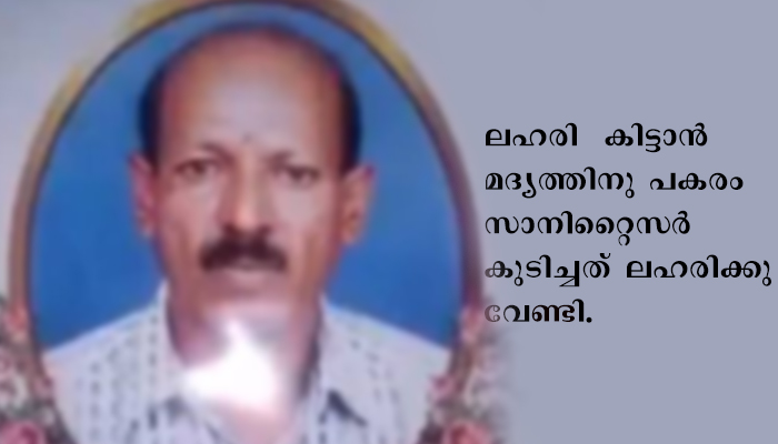 ലഹരി കിട്ടാന്‍ സാനിറ്റൈസര്‍ കുടിച്ചയാള്‍ മരിച്ചു