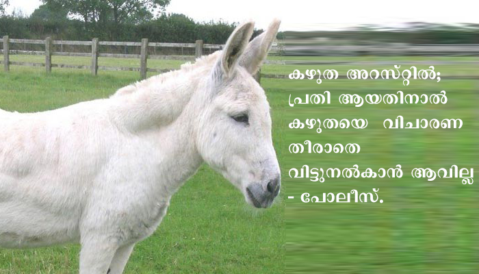 എഫ്ഐആറില് പേര് ഉള്പ്പെട്ടിരിക്കുന്നതു കൊണ്ട് കഴുതയ്ക്കും ജയിലില് കഴിയേണ്ടി വരുമെന്നാണ് വിവരം.