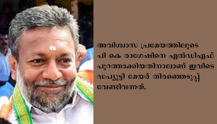 കണ്ണൂര്‍ കോര്‍പ്പറേഷന്‍ ഡെപ്യൂട്ടി മേയര്‍ സ്ഥാനത്തേക്ക് പി കെ രാഗേഷ് തിരഞ്ഞെടുക്കപ്പെട്ടു