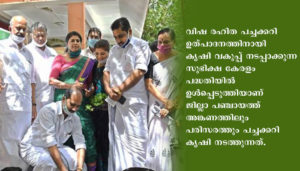 കോട്ടയം : ജില്ലാ പഞ്ചായത്തില് ഹരിതാഭം പച്ചക്കറി കൃഷി പദ്ധതിക്ക് തുടക്കമായി. വിഷ രഹിത പച്ചക്കറി ഉത്പാദനത്തിനായി കൃഷി വകുപ്പ് നടപ്പാക്കുന്ന സുഭിക്ഷ കേരളം പദ്ധതിയില് ഉള്പ്പെടുത്തിയാണ് ജില്ലാ പഞ്ചായത്ത് അങ്കണത്തിലും പരിസരത്തും പച്ചക്കറി കൃഷി നടത്തുന്നത്. ജില്ലാ പഞ്ചായത്ത് പ്രസിഡന്റ് അഡ്വ. സെബാസ്റ്റ്യന് കുളത്തുങ്കല് പദ്ധതി ഉദ്ഘാടനം ചെയ്തു. സുഭിക്ഷ കേരളവുമായി ബന്ധപ്പെട്ട് ജില്ലയെ ഭക്ഷ്യ സ്വയംപര്യാപ്തതയിലേക്ക് നയിക്കുന്നതിന് നാലു കോടി രൂപയുടെ പദ്ധതികളാണ് ജില്ലാ പഞ്ചായത്ത് തയാറാക്കിയിരിക്കുന്നതെന്ന് പ്രസിഡന്റ് പറഞ്ഞു.