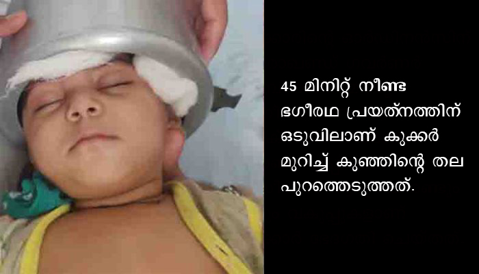 കളിക്കിടെ കുക്കറില്‍ തല കുടുങ്ങി; കുക്കര്‍ മുറിച്ച് കുഞ്ഞിനെ രക്ഷപ്പെടുത്തി