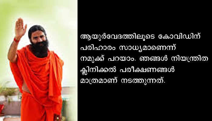 അഞ്ച് മുതല് 14 ദിവസത്തിനുള്ളില് കോവിഡ് -19 രോഗികളെ സുഖപ്പെടുത്തുന്നതിന് സാധിച്ചുവെന്നാണ് പതഞ്ജലി സി.ഇ.ഒയുടെ അവകാശവാദം. നൂറുകണക്കിന് കോവിഡ് -19 രോഗികളില് നടത്തിയ ക്ലിനിക്കല് പഠനം 100% അനുകൂല ഫലങ്ങള് നല്കിയെന്നും ബാലകൃഷ്ണ പറഞ്ഞു.