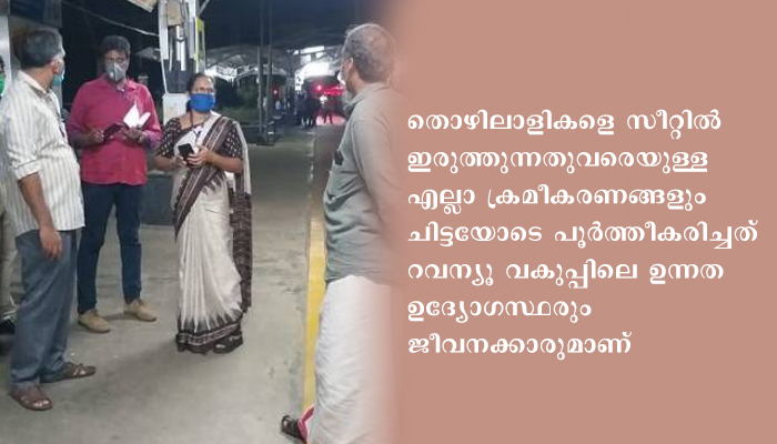 എല്ലാ നടപടികളും കോവിഡ് പ്രോട്ടോക്കോള്‍ കര്‍ശനമായി പാലിക്കുന്നു എന്ന് ഉറപ്പാക്കാന്‍ ജാഗ്രത പുലര്‍ത്തുന്നുണ്ട്. ഇതിന്റെ ഭാഗമായി സാമൂഹിക അകലം ഉറപ്പാക്കി പ്രത്യേക സ്റ്റിക്കര്‍ പതിച്ച് സീറ്റുകള്‍ ക്രമീകരിക്കുന്ന ജോലിയും കളക്ടറേറ്റ് ജീവനക്കാരാണ് നിര്‍വഹിക്കുന്നത്. ട്രെയിന്‍ ഏതു സമയത്താണെങ്കിലും തൊഴിലാളികളുടെ മടക്കയാത്രയ്ക്ക് വേണ്ട ക്രമീകരണങ്ങളില്‍ പങ്കാളികളാകാന്‍ ജീവനക്കാര്‍ തയ്യാറാണ്.