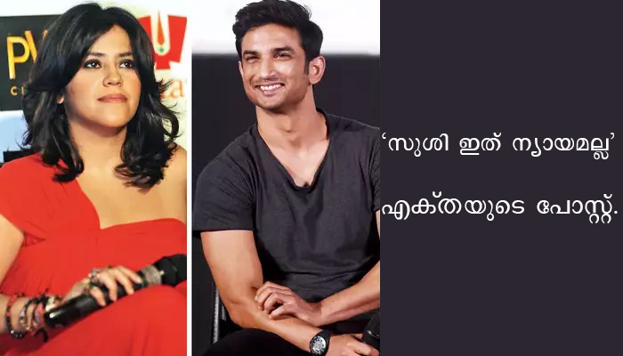 ‘സുശി ഇത് ന്യായമല്ല’ എന്ന് പറഞ്ഞുകൊണ്ടാണ് എക്തയുടെ പോസ്റ്റ്. ഇന്നലെ(14-06-20)യാണ് ഏക്താ പോസ്റ്റ് ഇന്‍സ്റ്റ ഗ്രാമില്‍ പങ്ക് വച്ചത്.