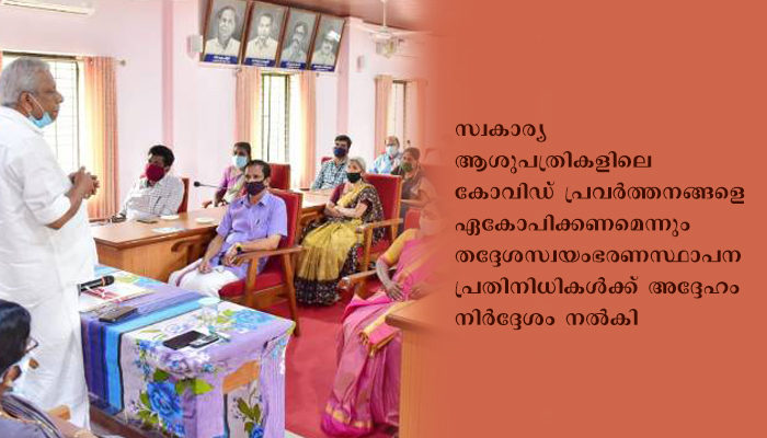 മണ്സൂണ് കാലമായതിനാല് വെള്ളം കയറുന്ന പ്രദേശങ്ങളില് നിന്ന് ക്വാറന്റൈയിന് കേന്ദ്രങ്ങള് മാറ്റി സ്ഥാപിക്കാന് തദ്ദേശ സ്ഥാപനങ്ങള് ശ്രദ്ധിക്കണം. കോവിഡ് ജാഗ്രതയ്ക്കൊപ്പം തന്നെ മറ്റ് മഴക്കാല രോഗങ്ങള് പടരാതിരിക്കാനുള്ള പ്രവര്ത്തനങ്ങള് നടത്തണം. നിയോജക മണ്ഡലത്തില് പഞ്ചായത്തടിസ്ഥാനത്തില് കോവിഡ് ജാഗ്രത ഇനിയും വിപുലപ്പെടുത്തണ്ടേതുണ്ട്. സര്ക്കാര് നിര്ദ്ദേശങ്ങള് പാലിക്കാന് ജനങ്ങളെ ബോധവത്ക്കരിക്കേണ്ടത് തദ്ദേശസ്വയംഭരണ സ്ഥാപനങ്ങളുടെ ചുമതലയാണ്. തദ്ദേശ സ്വയംഭരണ സ്ഥാപനങ്ങളിലും സര്ക്കാര് ഓഫീസുകളിലും സന്ദര്ശകരെ നിയന്ത്രിക്കണ മെന്നും പനി പരിശോധന ഉപകരണങ്ങള് എല്ലാ തദ്ദേശസ്വയംഭരണ സ്ഥാപനങ്ങളിലും സജ്ജമാക്കണമെന്നും മന്ത്രി നിര്ദ്ദേശിച്ചു.