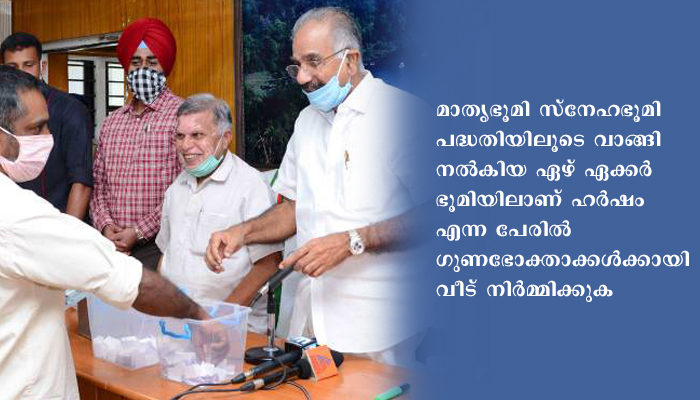 ആദ്യ ഘട്ടത്തില്‍ 52 പേര്‍ക്കാണ് പ്ലോട്ട് അനുവദിച്ചത്. ഓരോ പ്ലോട്ടിനും പ്രത്യേകം നമ്പര്‍ നല്‍കിയായിരുന്നു നറുക്കെടുപ്പ്.  മാതൃഭൂമി സ്നേഹഭൂമി പദ്ധതിയിലൂടെ വാങ്ങി നല്‍കിയ ഏഴ് ഏക്കര്‍ ഭൂമിയിലാണ് ഹര്‍ഷം എന്ന പേരില്‍ ഗുണഭോക്താക്കള്‍ക്കായി വീട് നിര്‍മ്മിക്കുക. അടുത്ത ആഴ്ച്ചയോടെ നിര്‍മ്മാണ പ്രവര്‍ത്തനങ്ങള്‍ തുടങ്ങും. ഓരോ കുടുംബത്തിനും  നാല് ലക്ഷം രൂപ സര്‍ക്കാര്‍ നല്‍കും. സന്നദ്ധ സംഘടകളുടെയും വ്യക്തികളുടെയും സഹായവാഗ്ദാനവും സ്വീകരിക്കും. ജില്ലാ ഭരണകൂടത്തിന്റെയും മേപ്പാടി ഗ്രാമപഞ്ചായത്തിന്റെയും ജനകീയ കമ്മിറ്റിയുടെയും മേല്‍നോട്ടത്തിലാണ് പ്രവൃത്തികള്‍ നടക്കുന്നത്.