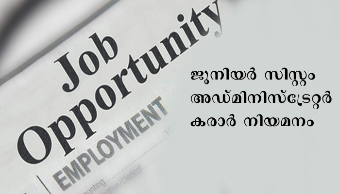 തിരുവനന്തപുരം: ധനകാര്യ വകുപ്പിന്റെ കീഴിലുള്ള സ്പാര്ക് പി.എം.യുവിലേക്ക് ജൂനിയര് സിസ്റ്റം അഡ്മിനിസ്ട്രേറ്റര് കരാര് നിയമനം