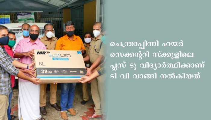 തൃശൂര്: ഓണ്ലൈന് വിദ്യാഭ്യാസത്തിനായി ടി വി ഇല്ലാതെ ബുദ്ധിമുട്ടുന്ന വിദ്യാര്ത്ഥിക്ക് ടി വി നല്കി കയ്പ്പമംഗലം ജനമൈത്രി പോലീസ്. ചെന്ത്രാപ്പിന്നി ഹയര് സെക്കന്ററി സ്ക്കൂളിലെ പ്ലസ് ടു വിദ്യാര്ത്ഥിക്കാണ് ടി വി വാങ്ങി നല്കിയത്. നിര്ദ്ധന കുടുംബത്തിലെ അംഗമായ വിദ്യാര്ത്ഥിയുടെ കാര്യം അധ്യാപകരാണ് പോലീസിന്റെ ശ്രദ്ധയില്പ്പെടുത്തുന്നത്. തുടര്ന്ന് കാളമുറിയിലെ സ്വകാര്യ ജ്വല്ലറിയുടെ സഹകരണത്തോടെയാണ് വിദ്യാര്ത്ഥിക്ക് നല്കാനുള്ള ടി വി വാങ്ങിച്ച് പ്രിന്സിപ്പാള് കെ.ആര് ഗിരീഷിന് കൈമാറി. കയ്പ്പമംഗലം എസ് ഐ സുബിന്ദ്, എ എസ് ഐ അബ്ദുള് സലാം, സിദ്ധീഖ് മംഗല്യ, മിഷാല് സിദ്ധീഖ്, പി ടി എ പ്രസിഡന്റ് പി. ആര് രാജേഷ് എന്നിവര് പങ്കെടുത്തു.