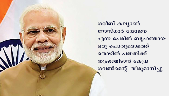 ന്യൂഡല്ഹി : ഗ്രാമീണ ജനതയ്ക്കും തിരിച്ചെത്തിയ കുടിയേറ്റ തൊഴിലാളി കൾക്കും ഉപജീവനത്തിനുള്ള അവസരങ്ങൾ ഒരുക്കുന്നതിനും അവരെ ശാക്തീകരിക്കുന്നതിനുമായി ഗരീബ് കല്യാൺ റോസ്ഗാർ യോജന എന്ന പേരിൽ ബൃഹത്തായ ഒരു പൊതുമരാമത്ത് തൊഴിൽ പദ്ധതിക്ക് തുടക്കമിടാൻ കേന്ദ്ര ഗവൺമെന്റ് തീരുമാനിച്ചു.