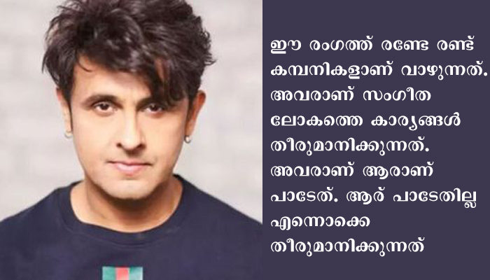ചലച്ചിത്ര മേഖലയേക്കാള് ഭീകരമായ രീതിയിലാണ് മ്യൂസിക് ഇന്ഡസ്ട്രിയില് മാഫിയ പിടിമുറിക്കിയിരിക്കുന്നത്. ഈ രംഗത്ത് രണ്ടേ രണ്ട് കമ്പനികളാണ് വാഴുന്നത്. അവരാണ് സംഗീത ലോകത്തെ കാര്യങ്ങള് തീരുമാനിക്കുന്നത്. അവരാണ് ആരാണ് പാടേണ്ടത്. ആര് പാടേണ്ടതില്ല എന്നൊക്കെ തീരുമാനിക്കു ന്നതെന്നും അദ്ദേഹം പറഞ്ഞു. ഇത് കഴിവുള്ള പലരുടെയും അവസരങ്ങളാണ് ഇല്ലാതാക്കുന്നതെന്നും നിഗം കൂട്ടിച്ചേര്ത്തു.