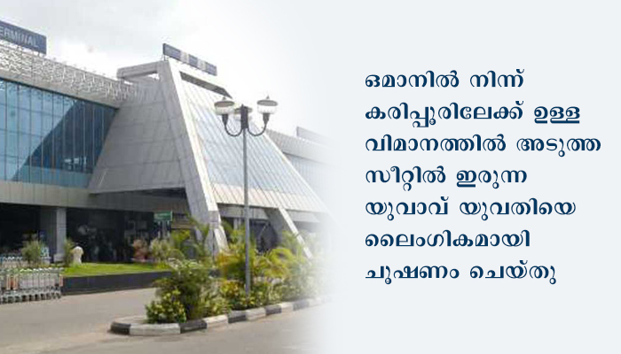 കരിപ്പൂർ: ഒമാനിൽ നിന്ന് കരിപ്പൂരിലേക്ക് ഉള്ള വിമാനത്തിൽ അടുത്ത സീറ്റിൽ ഇരുന്ന യുവാവ് യുവതിയെ ലൈംഗികമായി ചൂഷണം ചെയ്തു.