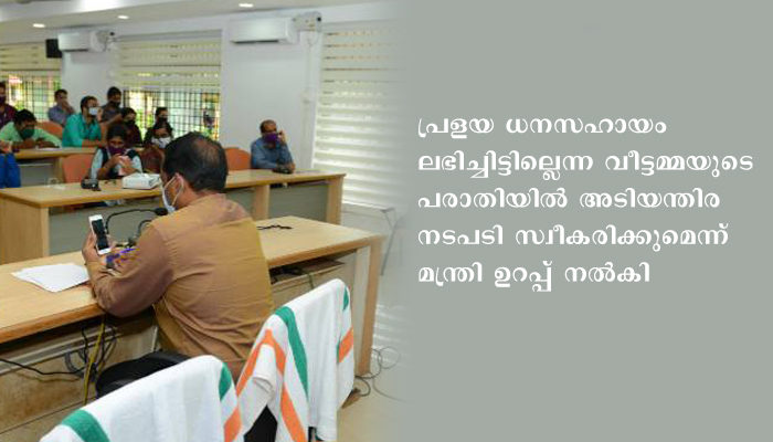 കാസര്‍കോട്: ജില്ലാ കളക്ടര്‍ ഡോ ഡി സജിത് ബാബു നടത്തിയ ഹോസ്ദുര്‍ഗ്ഗ് താലൂക്ക് തലത്തില്‍ ഓണ്‍ലൈന്‍ പരാതി പരിഹാര അദാലത്തില്‍ അപ്രതീക്ഷിത  അതിഥി യായി റവന്യൂ വകുപ്പ് മന്ത്രി ഇ ചന്ദ്രശേഖരന്‍ എത്തി. കളക്ടറേറ്റില്‍ നടക്കുന്ന മറ്റൊരു യോഗത്തില്‍ പങ്കെടുക്കാന്‍ എത്തിയതായിരുന്നു അദ്ദേഹം. ഇത് അദാലത്തില്‍ പങ്കെടുത്ത ഉദ്യോഗസ്ഥര്‍ക്കും പരാതിക്കാര്‍ക്കും പുത്തന്‍ അനുഭവമായി. പ്രളയ ധനസഹായം ലഭിച്ചിട്ടില്ലെന്ന വീട്ടമ്മയുടെ  പരാതിയില്‍ അടിയന്തിര നടപടി സ്വീകരിക്കുമെന്ന് മന്ത്രി ഉറപ്പ് നല്‍കി. ഹോസ്ദുര്‍ഗ്ഗ് താലൂക്കില്‍ ഇത്തരത്തില്‍ 33 പേര്‍ക്ക് പ്രളയ ധനസഹായം ലഭിക്കാന്‍ ബാക്കിയുണ്ടെന്നും, ഇത് ജൂണ്‍  അവസാനവാരത്തോടെ പരിഹരിക്കുമെന്നും മന്ത്രി ഉറപ്പ് നല്‍കി. സാങ്കേതിക തകരാര്‍ മൂലമാണ് പ്രളയ ധനസഹായം ദുരിത ബാധിതരുടെ അക്കൗണ്ടില്‍ എത്താന്‍ വൈകുന്നത്. ഈ പ്രശ്‌നം പരിഹരിക്കുന്നതിന് ഉടനടി നടപടി സ്വീകരിക്കും. ധനസഹായത്തിന് അപേക്ഷിച്ചപ്പോള്‍ മേല്‍വിലാസവും അക്കൗണ്ട് നമ്പറും രേഖപ്പെടുത്തിയതില്‍  പറ്റിയ പിഴവാകാം ഇതിന് കാരണമെന്ന് മന്ത്രി പറഞ്ഞു. അതത് വില്ലേജ് ഓഫീസര്‍ മുഖാന്തിരം ഗുണോഭോക്താക്കളുമായി നേരിട്ട് ബന്ധപ്പെട്ട് പരാതി പരിഹരിക്കാന്‍ കഴിയുമെന്ന് മന്ത്രി പറഞ്ഞു.