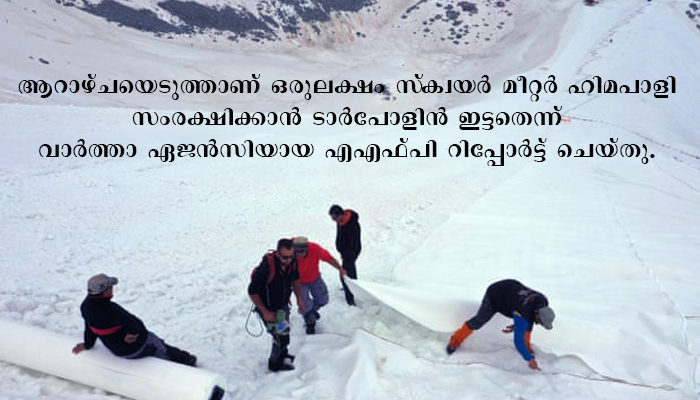 ന്യൂഡല്ഹി: ആല്പ്സ് പര്വതശിഖരത്തില് തകര്ച്ചയുടെ വക്കിലെത്തി നില്ക്കുന്ന ഹിമപാളികള്ക്ക് മുകളില് ടാര് പോളിന് ഷീറ്റുകള് സ്ഥാപിച്ച് ഇറ്റലിയിലെ പരിസ്ഥിതി സംരക്ഷകര്. ആഗോളതാപനം മൂലം മഞ്ഞുപാളികള് ഉരുകുന്നത് തടയാനാണ് ഇതിലൂടെ ഇവര് ലക്ഷ്യമിടുന്നത്. പ്ലാന്പിന്സ്യൂക്സ് മഞ്ഞുപാളിയാണ് ഇവര് സംരക്ഷിക്കുന്നത്. ആറാഴ്ചയെടുത്താണ് ഒരുലക്ഷം സ്ക്വയര് മീറ്റര് ഹിമപാളി സംരക്ഷിക്കാന് ടാര്പോളിന് ഇട്ടതെന്ന് വാര്ത്താ ഏജന്സിയായ എഎഫ്പി റിപ്പോര്ട്ട് ചെയ്തു. മഞ്ഞരുകലിന്റെ വേഗത കുറയ്ക്കാന് ഇതിലൂടെ കഴിയുമെന്നാണ് പരിസ്ഥിതി സംരക്ഷകര് കരുതുന്നത്.