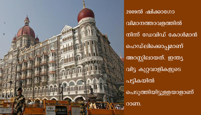 പാക്-കനേഡിയന് ഭീകരനായ റാണയുടെ 14 വര്ഷത്തെ ജയില് ശിക്ഷ അവസാനിക്കുന്നത് 2021 ഡിസംബറിലാണ്. ഇന്ത്യയില് വിചാരണ നേരിടുന്നതി നാലാണ് ജാമ്യം ലഭിച്ച് പുറത്തിറങ്ങിയ റാണയെ വീണ്ടും അറസ്റ്റ് ചെയ്യാന് അധികൃതര് തീരുമാനിച്ചത്. ഇയാളെ ഉടന് ഇന്ത്യയ്ക്ക് കൈമാറുമെന്നാണ് സൂചന. കാനഡയിലെ വ്യവസായിയും പാക് സൈന്യത്തിലെ മുന് ഡോക്ടറുമായിരുന്നു റാണ. 2009ല് ഷിക്കാഗോ വിമാനത്താവളത്തില്നിന്ന് ഡേവിഡ് കോള്മാന് ഹെഡ്ലിക്കൊപ്പമാണ് അറസ്റ്റിലായത്. ഇന്ത്യ രാജ്യം വിട്ട കുറ്റവാളികളുടെ പട്ടികയില്പ്പെടുത്തിയിട്ടുള്ളയാളാണ് റാണ. പാക് ചാരസംഘടനയായ ഐ.എസ്.ഐ.യുമായി റാണയ്ക്ക് ബന്ധമുള്ളതായി നേരത്തേ വ്യക്തമായിരുന്നു.