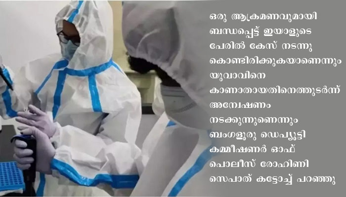 ഒരു ആക്രമണവുമായി ബന്ധപ്പെട്ട് ഇയാളുടെ പേരില് കേസ് നടന്നുകൊണ്ടിരിക്കുകയാണെന്നും യുവാവിനെ കാണാതായതിനെത്തുടര്ന്ന് അന്വേഷണം നടക്കുന്നുണെന്നും ബംഗളൂരു ഡെപ്യൂട്ടി കമ്മീഷണര് ഓഫ് പൊലീസ് രോഹിണി സെപാത് കട്ടോച്ച് പറഞ്ഞു. കോവിഡ് ചികിത്സയിലിരിക്കുന്ന രോഗി ആശുപത്രിയില്നിന്നു രക്ഷപ്പെടുന്നത് ബെംഗളൂരുവില് ആദ്യ സംഭവമാണ്.