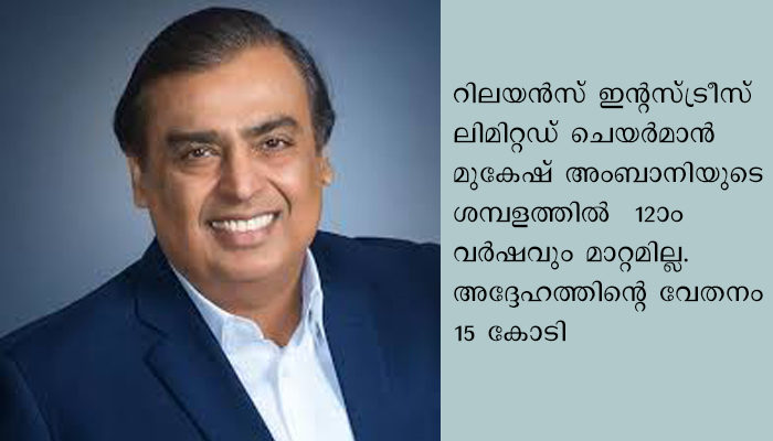 എക്സിക്ക്യൂട്ടിവ് ഡയറക്ടര്‍മാരുടെ വേതനം 24 കോടി, ഉടമസ്ഥന് വെറും 15 കോടി, 12ാം വര്‍ഷവും ശബളം വര്‍ധിപ്പിക്കാതെ മുകേഷ് അംബാനി