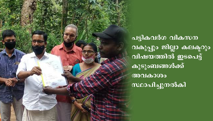 കെ. ബാബു എം.എല്.എ. കൈവശാവകാശ രേഖകളുടെ വിതരണോദ്ഘാടനം നടത്തി. കൊല്ലങ്കോട് ബ്ലോക്ക് പഞ്ചായത്ത് പ്രസിഡന്റ് ശാരദാ തുളസീദാസ്, വൈസ് പ്രസിഡന്റ് ഗണേശന്, മുതലമട ഗ്രാമപഞ്ചായത്ത് പ്രസിഡന്റ് ബേബിസുധ, നെന്മാറ ഡി.എഫ്.ഒ. അനീഷ്, ജില്ലാ പട്ടികവര്ഗ വികസന ഓഫീസര് എം. മല്ലിക, കൊല്ലങ്കോട് ട്രൈബല് എക്സ്റ്റന്ഷന് ഓഫീസര് പി. രാജീവ്, മറ്റ് ബ്ലോക്ക് ഗ്രാമപഞ്ചായത്ത് ജീവനക്കാര് എന്നിവര് പങ്കെടുത്തു.