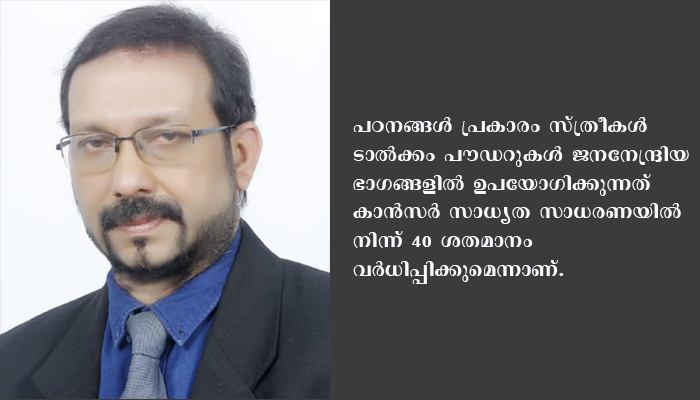 പഠനങ്ങള് പ്രകാരം സ്ത്രീകള് ടാല്ക്കം പൗഡറുകള് ജനനേന്ദ്രിയ ഭാഗങ്ങളില് ഉപയോഗിക്കുന്നത് കാന്സര് സാധ്യത സാധരണയില് നിന്ന് 40 ശതമാനം വര്ധിപ്പിക്കുമെന്നാണ്.